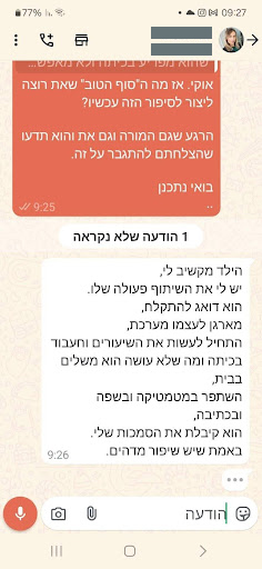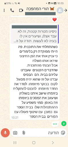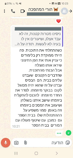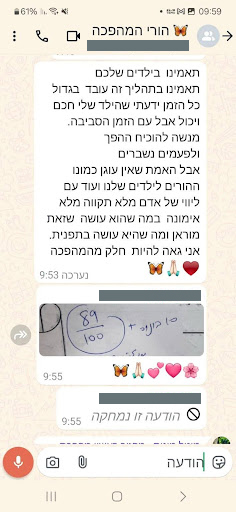 "הגענו למצב שהוא היה מגיע לבית ספר – ולא מוכן להיכנס לכתה, ימים שלמים! בזכות התהליך שעברנו, הוא נשאר בכיתה!"
